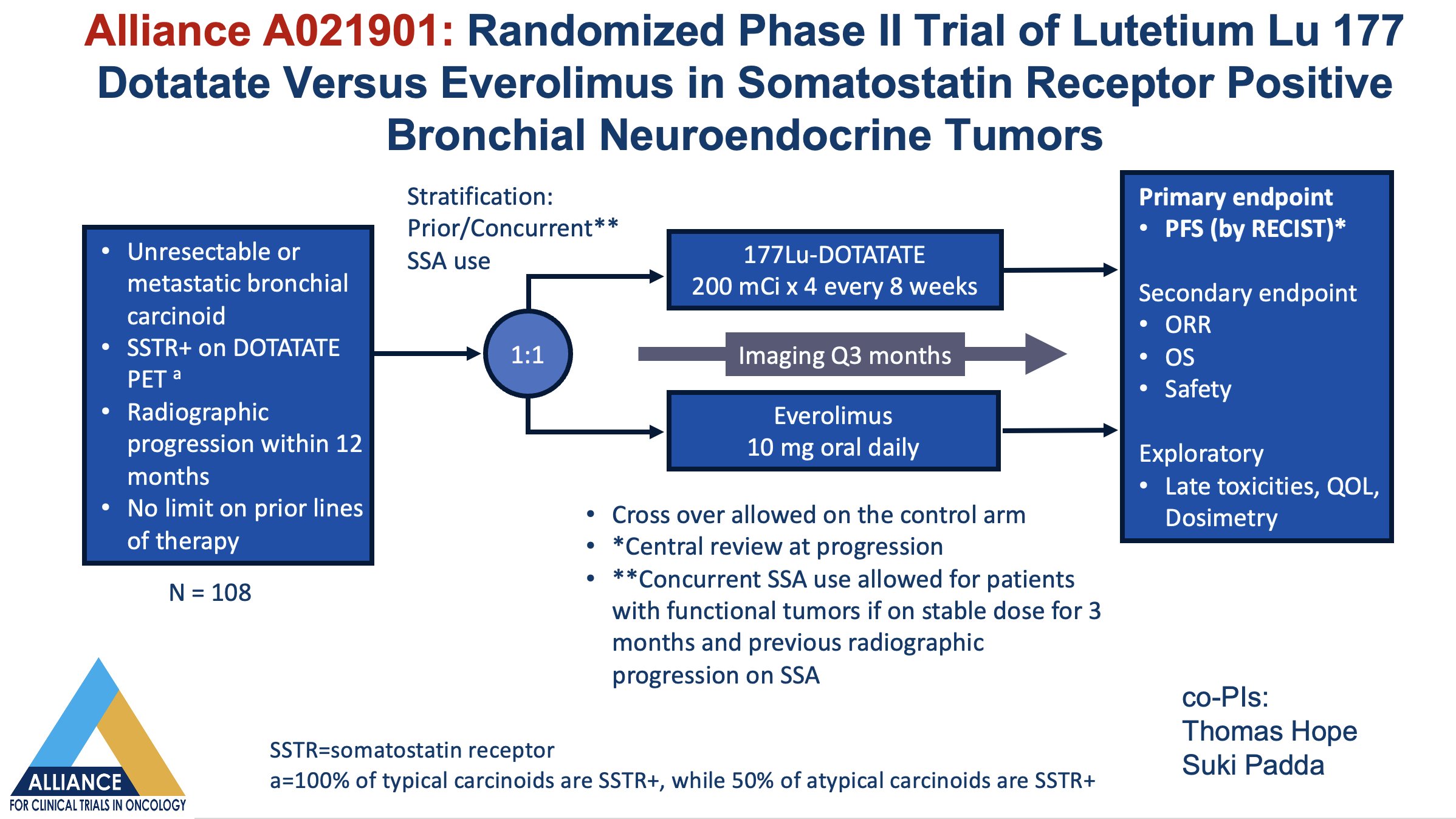 Reading between the lines and not wishing to prejudge the outcome of the trial, this could be an opportunity to request somatostatin receptor positive Lung NETs be added to the authorisation for Lutathera (Lu177 PRRT). This won’t happen overnight; clinical trials take time.